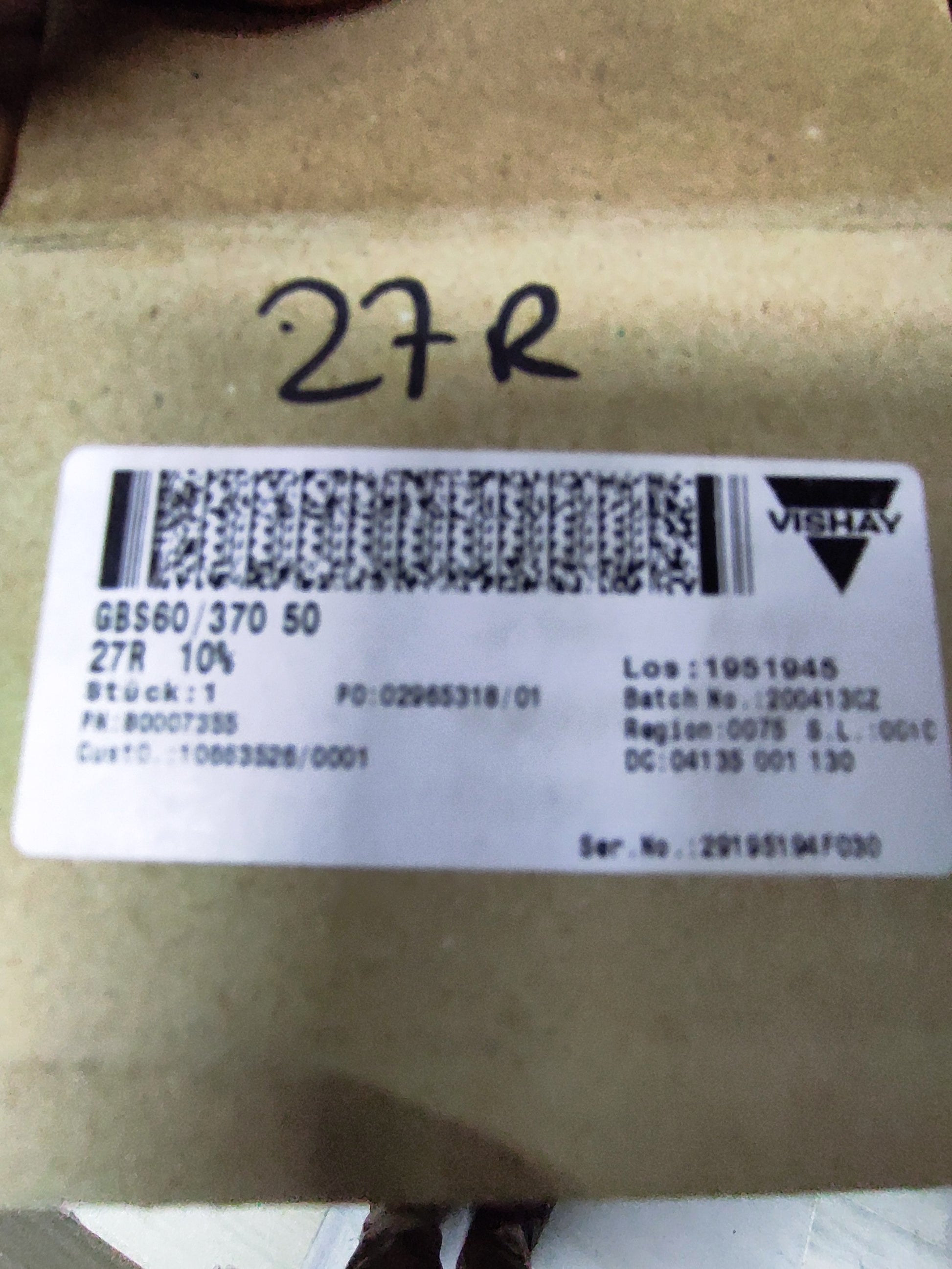PIPE RESISTORS LD9127R0KN12 27R VISHAY